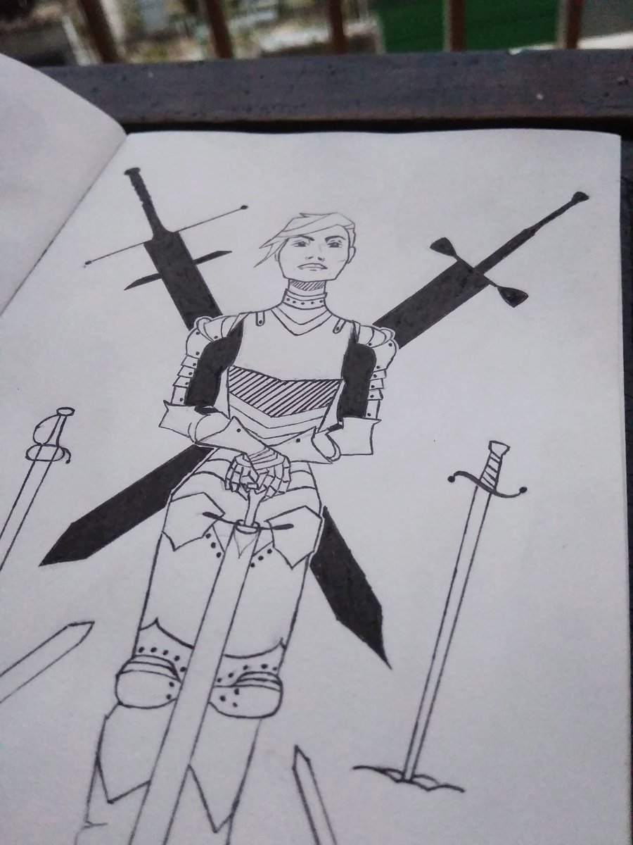 2 3 Day:4 •seven swords• #midnightober/#inktober2020 powerful lesbian energy 20/10/05 06:39