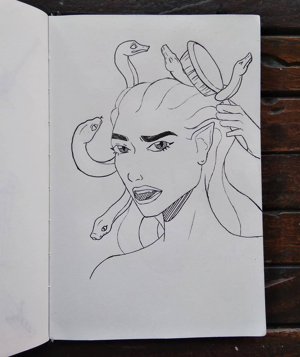 2 6 Day:5 •medusa•🐍 #midnightober/#Inktober 20/10/07 05:40