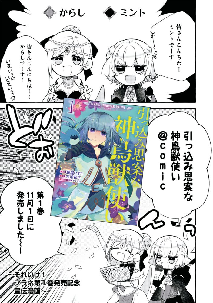 WEB連載中『引っ込み思案な神鳥獣使い―プラネットイントルーダー・オンライン―@COMIC』本日更新です!今回は11月1日に発売された1巻の宣伝漫画になります。 seiga.nicovideo.jp/watch/mg606252…