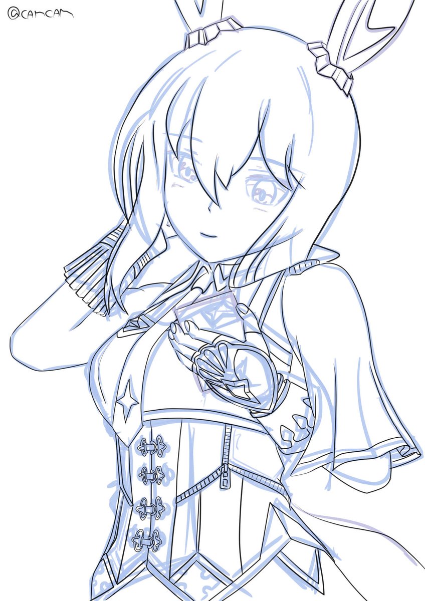 アヤベさん第2弾、ここまでは順調かな !? 今の線画は自分の中では仮線画なので、この後線画清書してから色塗りの予定・・・・ 早ければ今週中にアップできるかな😊 #ウマ娘 #アドマイヤベガ #絵描きさんと繋がりたい