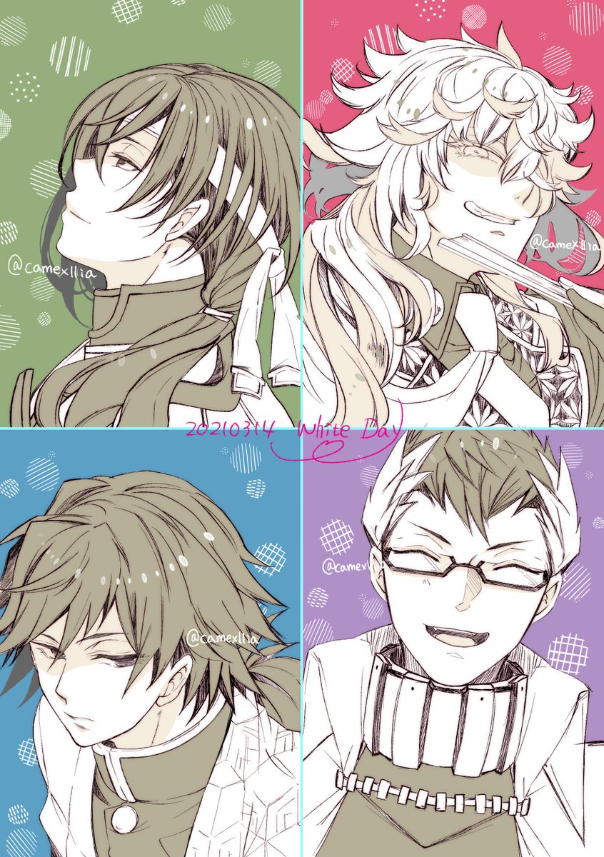 ホワイトデーなので今各ジャンルで推してるお兄さん達を描きました〜✌️✨✨ ネクタル/一文字則宗 冨岡義勇/シグルド