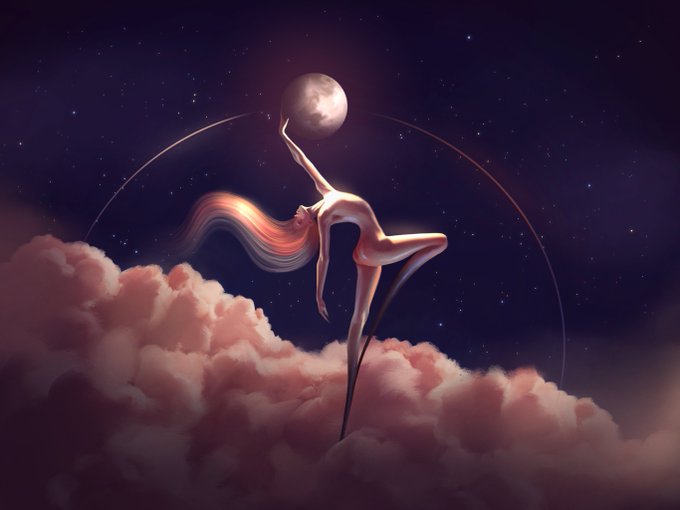 🔥 New drop coming soon @SuperRare💎 AbovΞ The Clouds 🌕 I've been working on this piece for a while now, so excited to finally share it with you guys!😊 I've chosen a deep blue sky and stars instead of my pastel skies for this one ✨ #NFT #NFTart #NFTCommunity #cryptoart