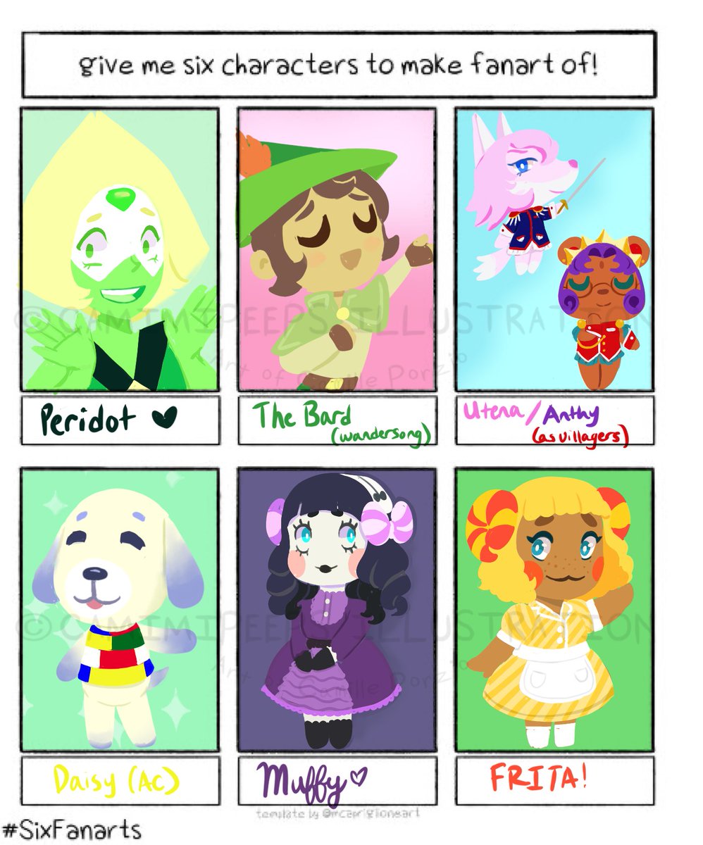 I finally finished my #sixfanarts !! Thank you to those who suggested characters! I'll be honest this was hard, but I enjoy (most of) it! Peridot is my favorite! #6fanarts #SixFanartsChallenge