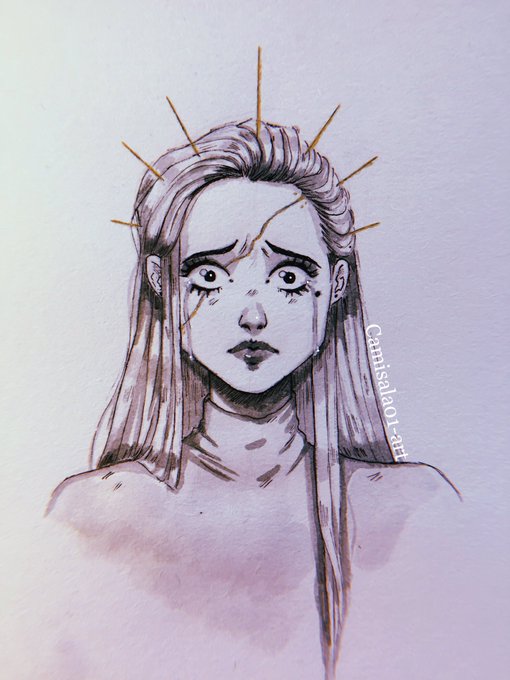 #inktober day 29- ‘injured’. While sketching for this prompt, a scene of Hera and Persephone came to my mind. So here’s Hera from #LoreOlympus by @used_bandaid ✨✨✨ #inktoberday29 #injured #art #ArtistOnTwitter #hera #fanart #ink #gold #drawing #painting #traditional