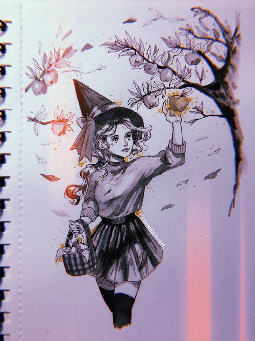 #inktober day 31- ‘ripe’ 🍎✨ #inktoberday31 #ink #jakeparker #art #myart #witch #gold #drawing #ArtistOnTwitter #painting #traditionalart