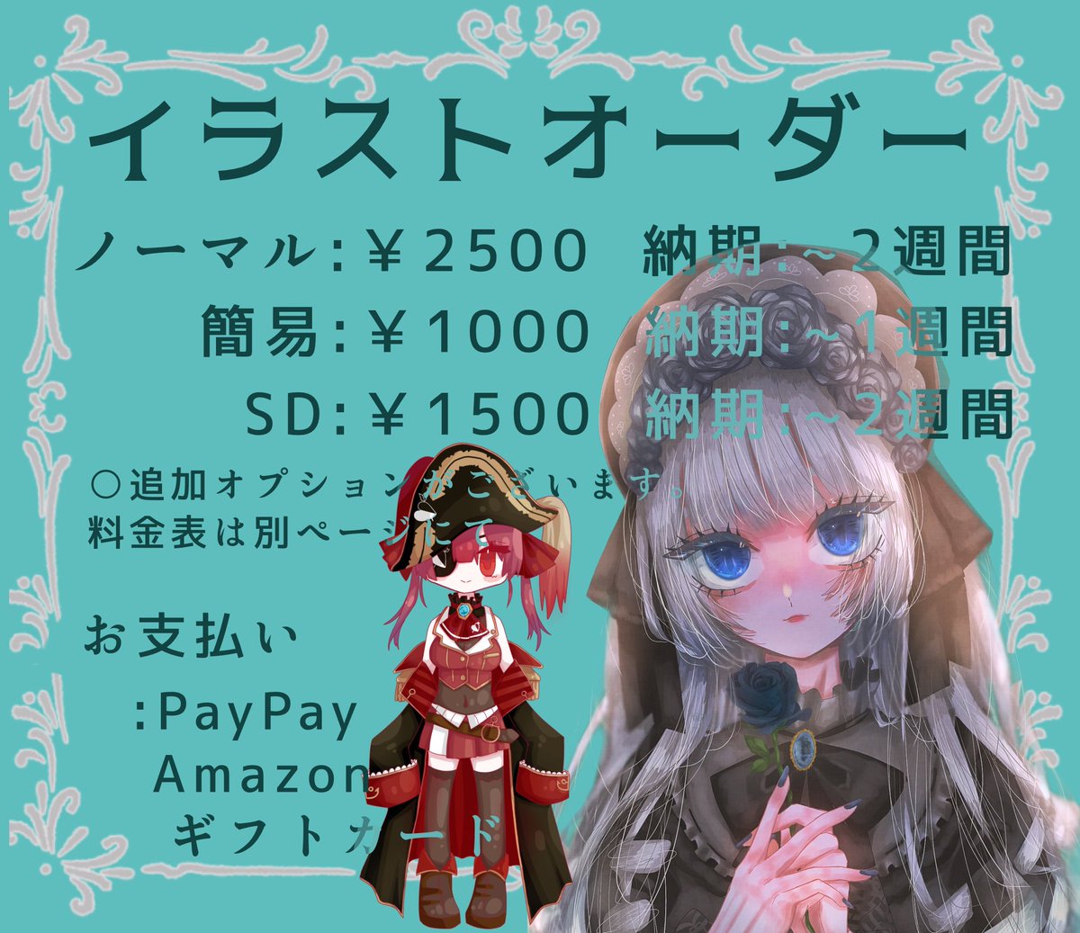 ❅イラストオーダー受付中❅ 基本料金➧¥1000~2500 納期➧~2週間 お支払い➧PayPay Amazonギフト券 御相談、お見積もりだけでもご気軽にDMお寄せください❀ #有償依頼 #イラスト依頼 #イラストオーダー #アイコン依頼 #有償依頼受付中 #有償依頼募集中 #有償アイコン #イラスト