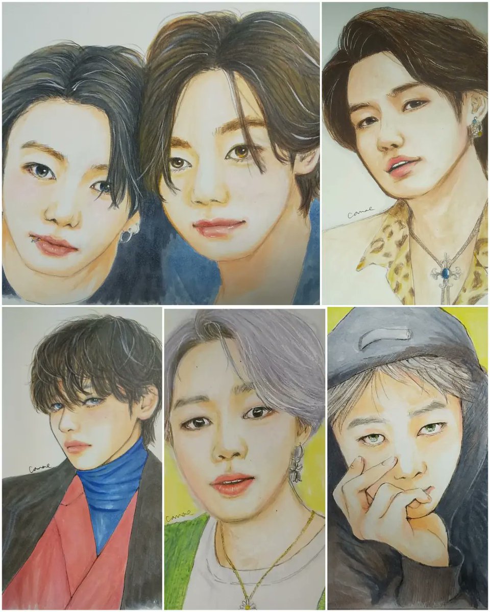#今月描いた絵を晒そう 2月は6枚でした💜 資格試験もあるし、業務多忙だから3月もあんまり時間ないかもだけど描けるといいな🍀描けない時は皆さんの絵を見て補給します❤️ #btsfanart #BTSArmy #JungKook #JungKookfanart #jiminfanart #jhopefanart