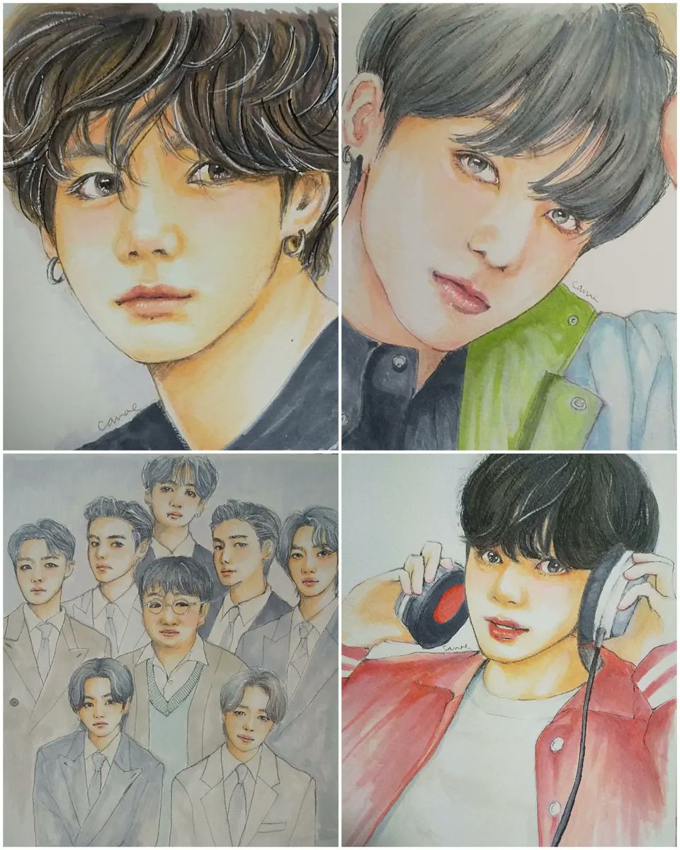 #今月描いた絵を晒そう 9月はお誕生日が多かったのでセンイルのためのイラスト描きがたくさんある思い出月😆❤️ その1 #btsfanart #Jungkookfanart #jiminfanart #vfanart #rmfanart #sugafanart