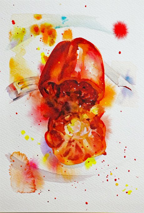 本日の水彩画。Tortilla de patata, Hecho a mano、みんな大好き手作りのスペイン風オムレツ、SMサイズでございます。 #突撃となりの昼ごはん #水彩画 #aquiarela #watercolor #油彩画家の水彩
