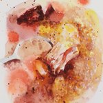 本日の水彩画。lentejas、レンズ豆の煮物、SMサイズでございます。 #突撃となりの昼ごはん #lentejas #レンズ豆って日本にないよね #チョリソーのダシが美味しい #水彩画 #aquiarela #watercolor #油彩画家の水彩