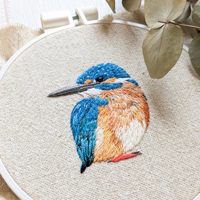 29 328 カワセミさんの刺繍が完成しました〜🕊♥ 少しあどけなさが残る感じに仕上がりました😊 #カワセミ #ファブリックパネル #刺繍 21/09/14 22:04