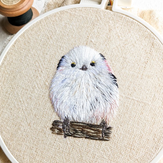 390 3379 シマエナガさんの刺繍が完成しました🕊✨ もふもふになるよう密度高めに刺繍しています😊だいぶ時間がかかりましたが、無事に完成して良かったです😍 22/07/22 21:45