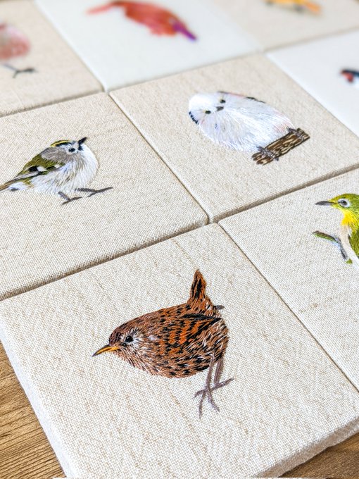 本日からファブリックパネルと2023年カレンダーの販売を開始しました。 一針一針ていねいに制作された野鳥たちは躍動感があり今にも動き出しそう! ファブリックパネルは約10cmの小さなサイズなので場所を選ばずに飾っていただけるのもポイントです✨ ぜひ野鳥さんと素敵な時間をお過ごし下さい♡