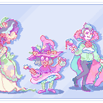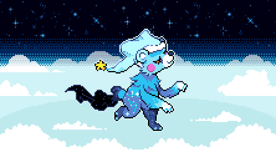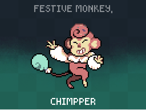 it's not only #monsterdesignmonday, but also my birthday! --- The best way to attract a troupe of CHIMPPER is to throw a party - they're cheery and love dancing! Their favorite party trick is inflating their poofy, floaty tails and walking in a handstand. --- #pixelart #candal