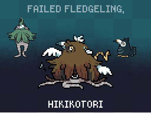 #monsterdesignmonday !!! --- The disgruntled HIKIKOTORI is the result of a NANNY FERN doting over a lazy, toxic egg. Removal of the mutated PUCKO hatchling results in eventual recovery of the NANNY FERN, but the bird never survives. --- #pixelart #candal