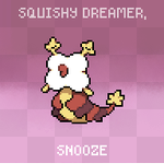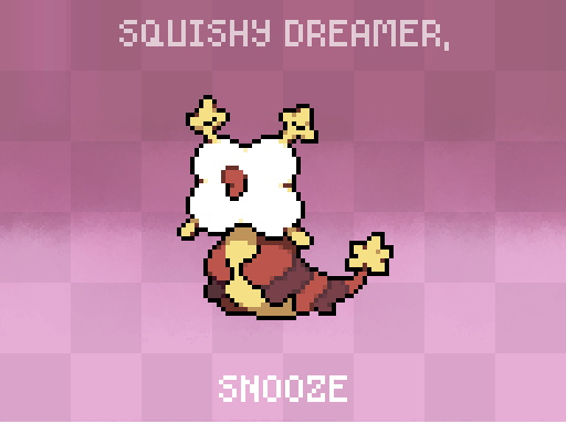 #monsterdesignmonday --- SNOOZE are very rare to find. When in battle, it shoots a sticky slime that puts enemies to sleep after a couple of minutes. Their body is warm and soft, and they often let others use them as a pillow at night. --- #pixelart #candal
