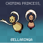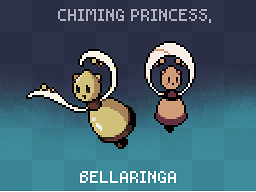 its #monsterdesignmonday yess --- Groups of BELLARINGA love practicing exquisit dances together. As they dance, their metallic bodies toll and chime, making a pleasant melody. Older BELLARINGA are known for their massive size and slow, low-pitched chimes. --- #pixelart #candal