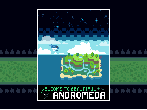 A travel poster of my #AnimalCrossing island, Andromeda! I already posted the sprites I made of my neighbors, so I figured I'd focus on the island 🏝️ --- @Pixel_Dailies #pixel_dailies #pixelart