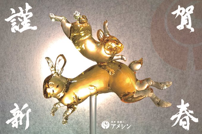あけましておめでとうございます🐰 今年の干支はうさぎ🐰 アメシン花川戸店でほぼ毎日開催しています、飴細工体験教室で「うさぎ」の飴細工を作る事ができます 今年も1月2日よりご予約可能です🍭 お箱入りにしてお正月飾りにすることも出来ますよ🎍 お待ちしております! ame-shin.com/workshop/