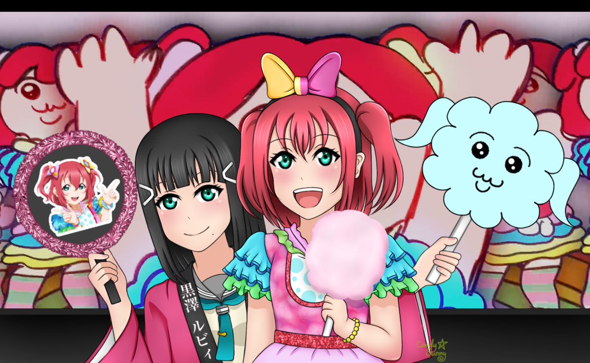 Cotton Candy Ei-Ei-Oh!! v.2 di versi 2 ini, aku mengikuti kostum ruby dari UR Card SIF. dan ada beberapa bagian lainnya juga kuperbaiki. #黒澤ルビィ #黒澤ダイヤ #イラスト #ラブライブシャンシャイン #zonakaryaid #artidn #ArtistOnTwitter