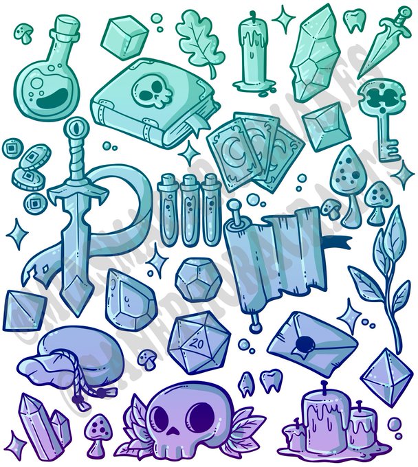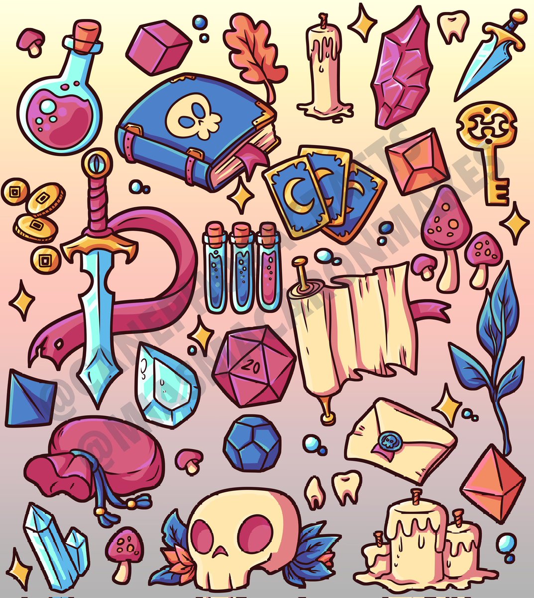 A cute lil pattern me n' @MiasMacaron worked on! Likely going to be prints and maybe tote bags/zip pouches! #dnd #pathfinder #dndart #pathfinderrpg #ttrpg #witch #warlock