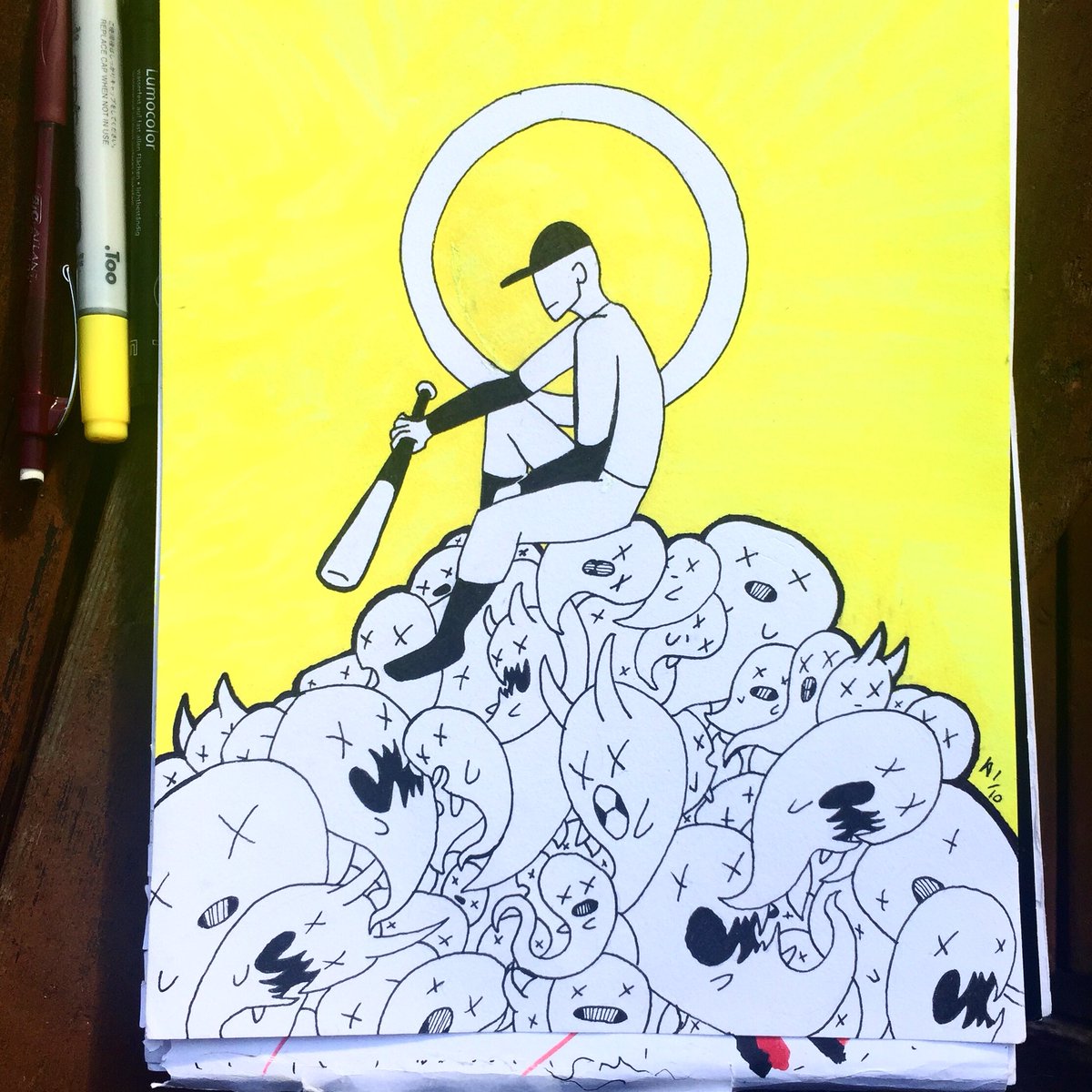 Alright, let’s see if I can last this time. Day 1: Ring, with @MortisGhost’s Batter #Inktober2019 #inktober #OFF #OFFGame #OffBatter #traditionalart #artistsontwitter