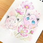69日目、プリン🎈 何描こうかって旦那に聞いてみたらプリンって言われて急にイメージが湧いてきた🤭🌼秋なのでコスモスも描いてみた✨✨ また色々修正しないといけないところもあってとりあえずここまで🫶🏻 メタモンプリンはお気に入り〜🤣 #100日チャレンジ #ポケモンイラスト #プリン
