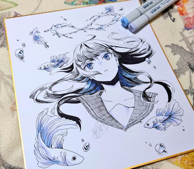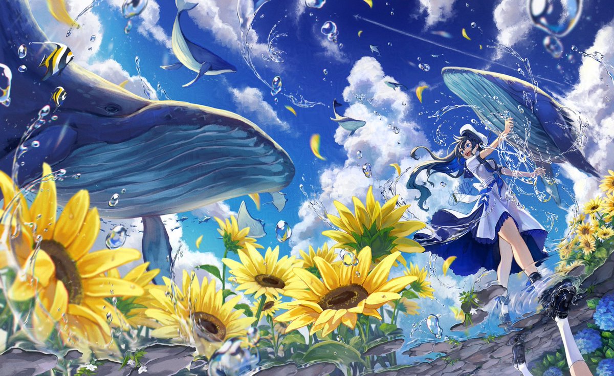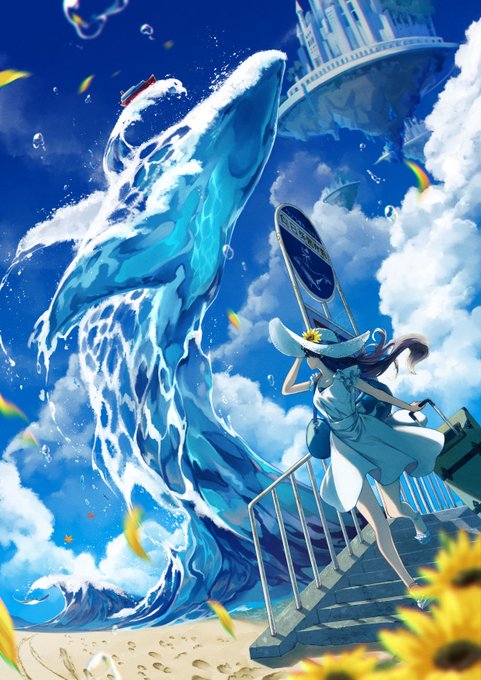 【🌹お知らせ🌹】 7/11に発売となる初商業画集『水咲案内』の予約受付がAmazon等で開始されました!!!🎉✨ 書影はこちらのビジュアルで確定となりました!一番のお気に入りが目印です🐳🌻 ぜひお手に取っていただけたら嬉しいです!ご予約を何卒よろしくお願いいたします🙇♀️ amazon.co.jp/dp/4796874275