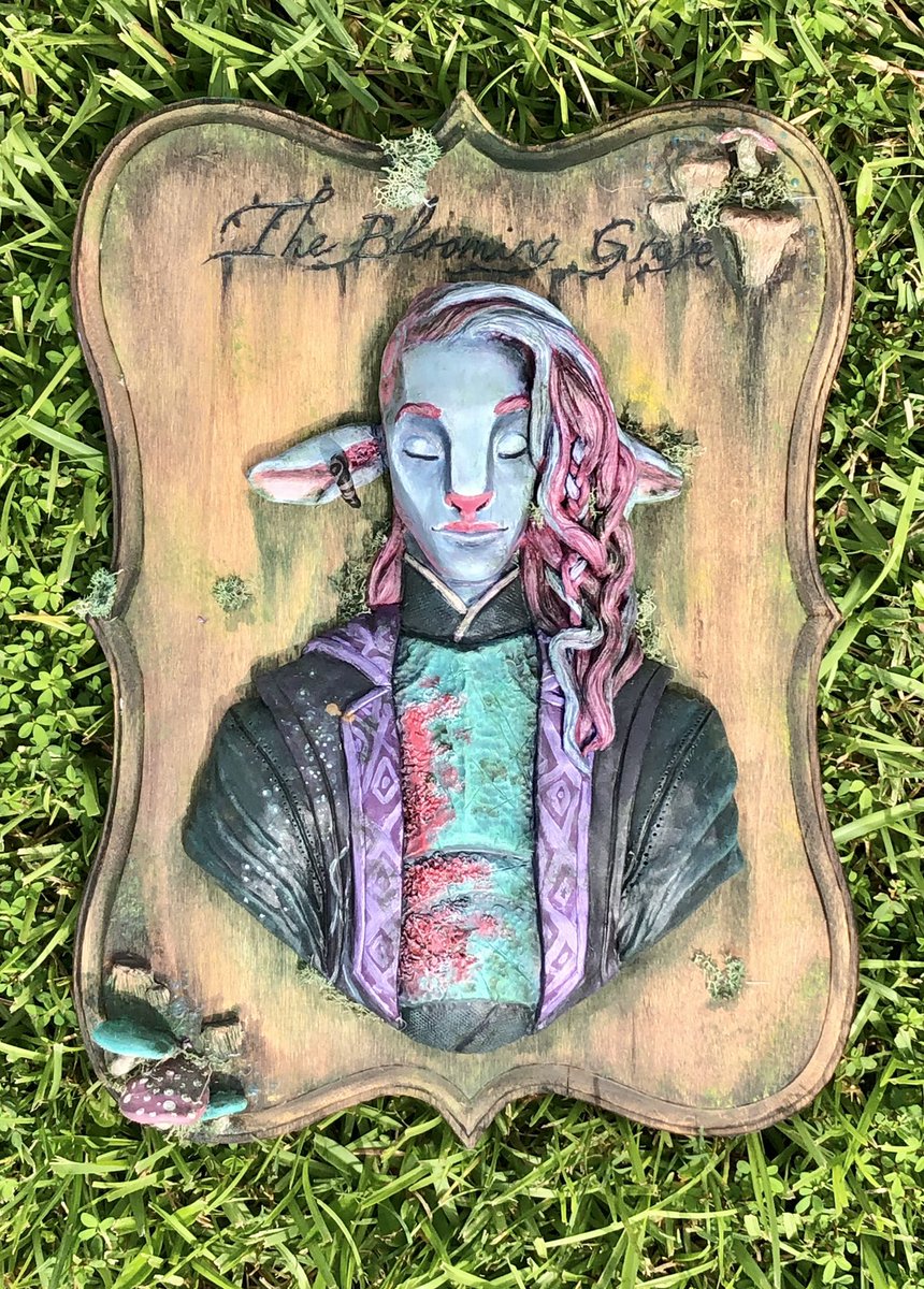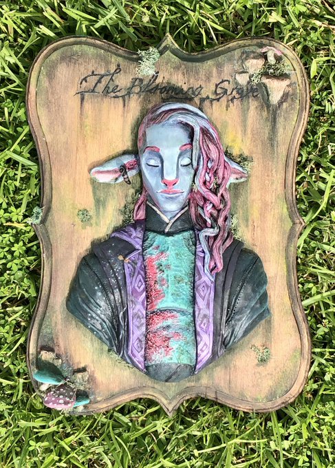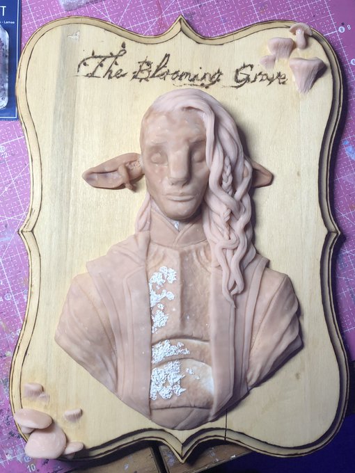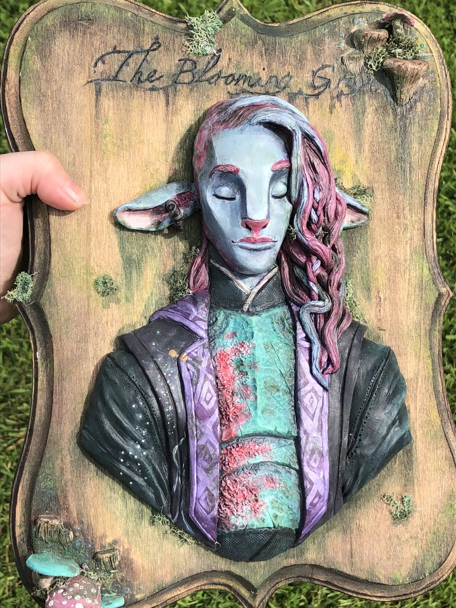 “From life, to death, to back again…” 🌬🍄🌱 * * Hand-scultped, hand-painted Blooming Grove sign/plaque by yours truly✨ * * Caduceus Clay by @executivegoth on @CriticalRole by @matthewmercer * * #CriticalRole #criticalrolefanart #CriticalRoleArt #caduceusclay #DnD #polymerclay