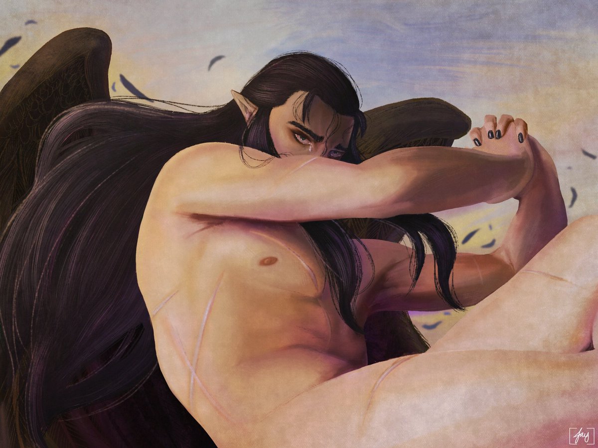 ⌛️🖤ꜰᴀʟʟᴇɴ ᴄʜᴀᴍᴘɪᴏɴ🖤⌛️ • CW // scars • Vax’ildan as Alexandre Cabanel’s “Fallen Angel” • • Character by @VoiceOfOBrien in @CriticalRole Vox Machina • • #CriticalRole #VoxMachina #TheLegendOfVoxMachina #ArtistOnTwitter #criticalrolefanart #CriticalRoleArt #Procreate