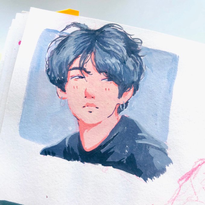 stress drawing at its finest.. his smile makes me feel happy 🥺 #illustration #btsfanart #Taehyung