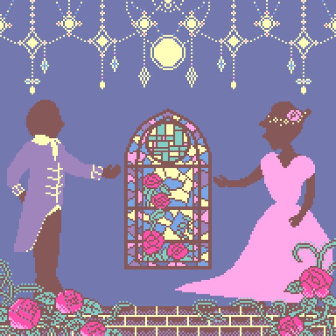 "Shall We Dance?" にゅーらいすさん発 「色縛リレー」企画 第7走者はcappuccinoです☕️ #色縛リレー #pixelart #dotpict #ドット絵
