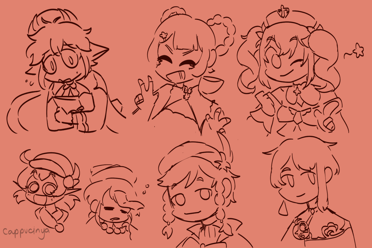 cappu's genshin team (SCUFFED BUT REAL) #GenshinImpact #genshinimpactfanart #Razor #Sucrose #Xingqiu #Chongyun #fanart #doodles