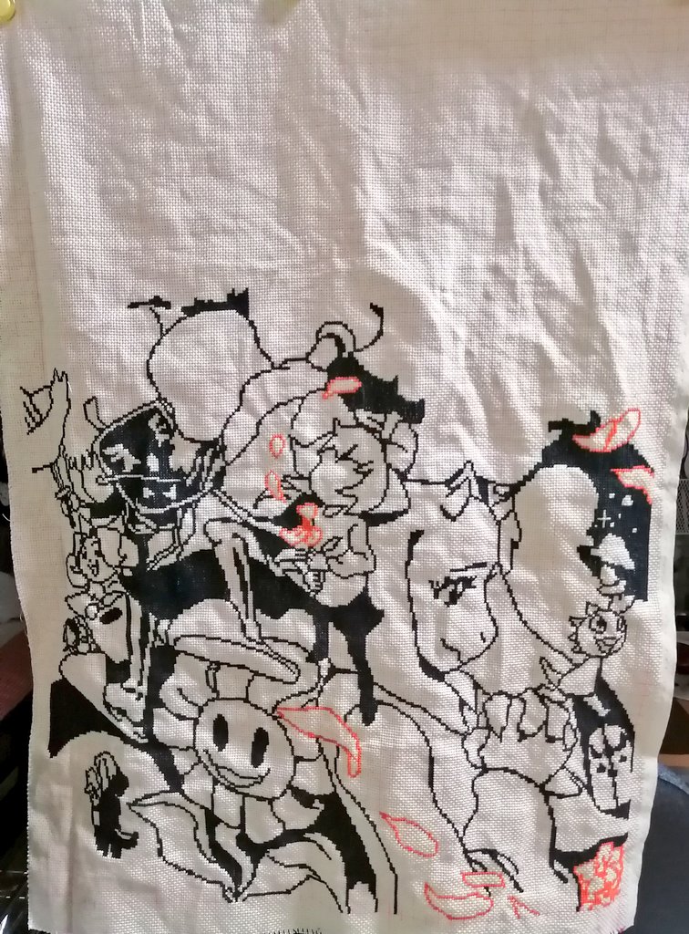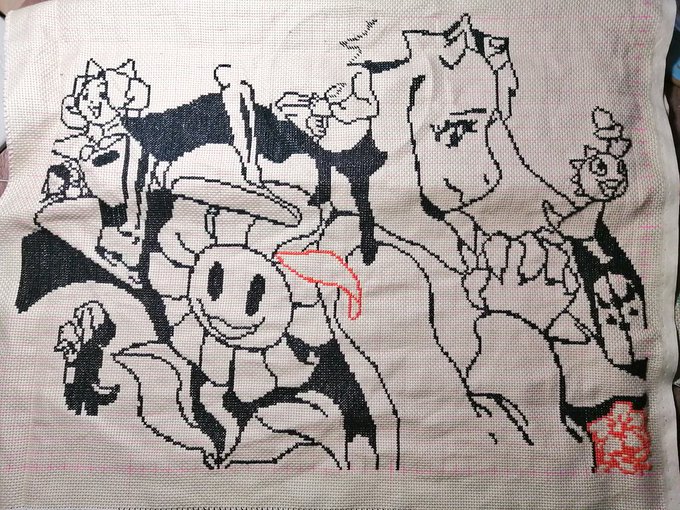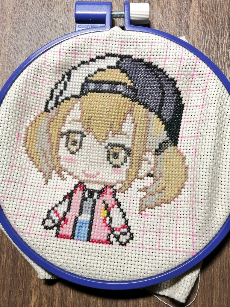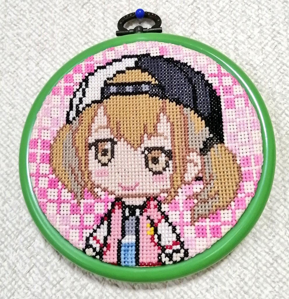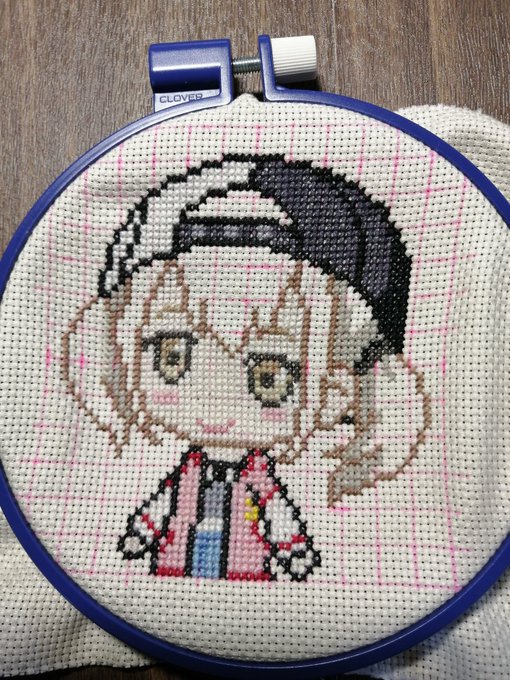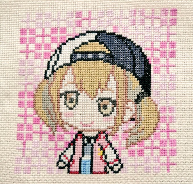 刺繍完成しました☺️ この度はごももさん(@momogoma426)のイラストを使わせていただきました。 (本家様イラスト⇒twitter.com/momogoma426/st…) 刺していてめっちゃ楽しかったです。ありがとうございました☺️ #クロスステッチ #刺繍 #crossstitch #ドット絵
