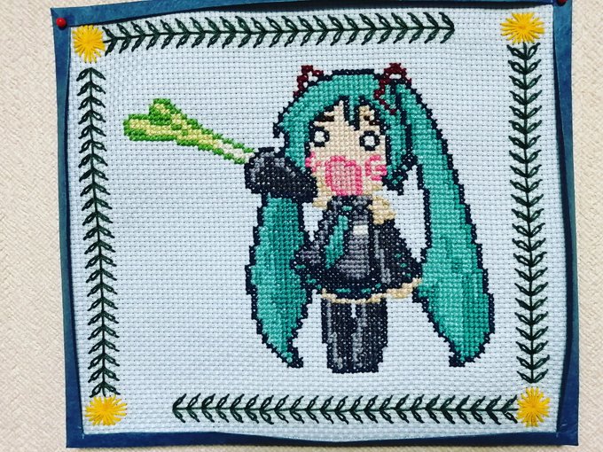ミクさんの誕生日なので、たまには過去の作品を☺️ 最初の作品と、桜ミクさんです✨ ミクさんお誕生日おめでとうございます😌🎁🎂 #クロスステッチ #ドット絵 #初音ミク生誕祭2022 #初音ミク誕生祭2022