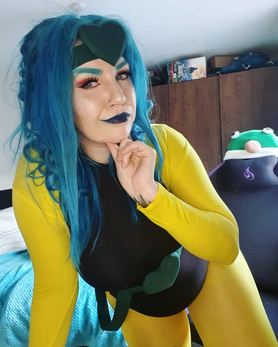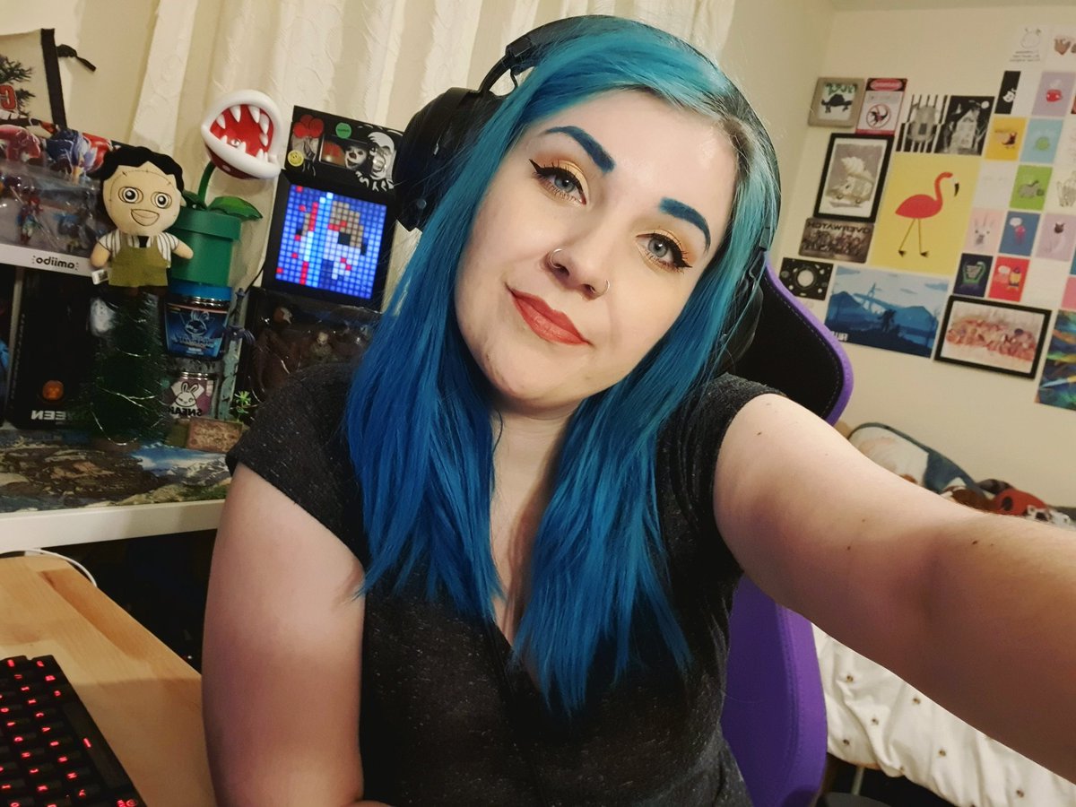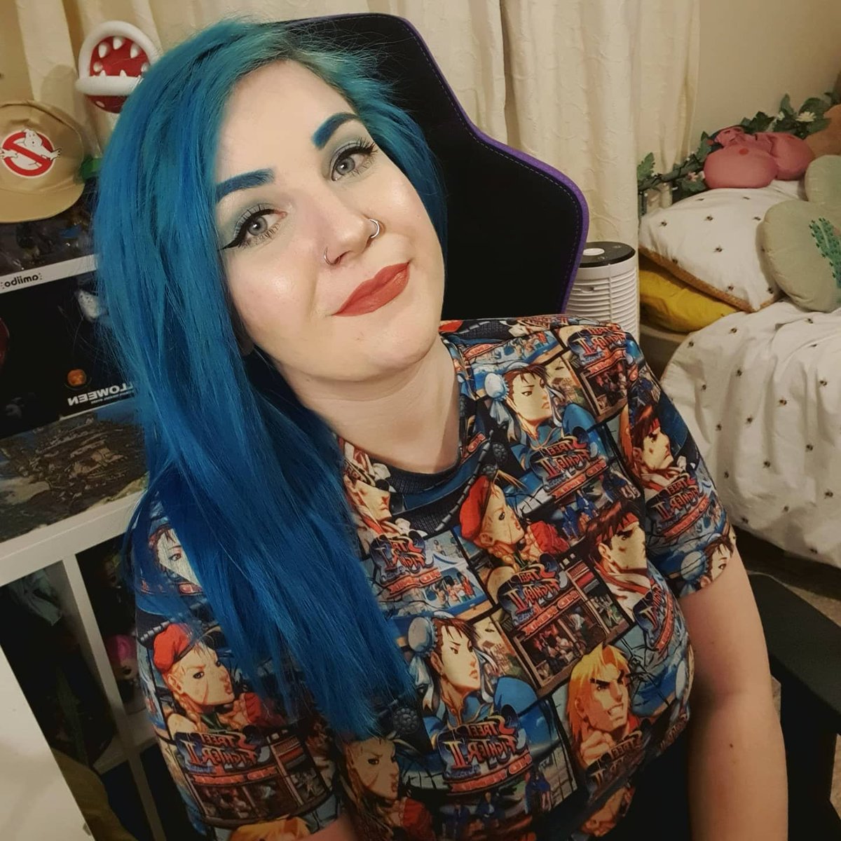 So chat redeemed the Wardrobe cosplay challenge this evening, and it was to dress up as a Calico character. I chose Estelle and even gave myself a fringe! #twitch #twitchgirls #gamer #streamer #girlgamer #alternativegirl #bluehair #calico #cosplay #goth
