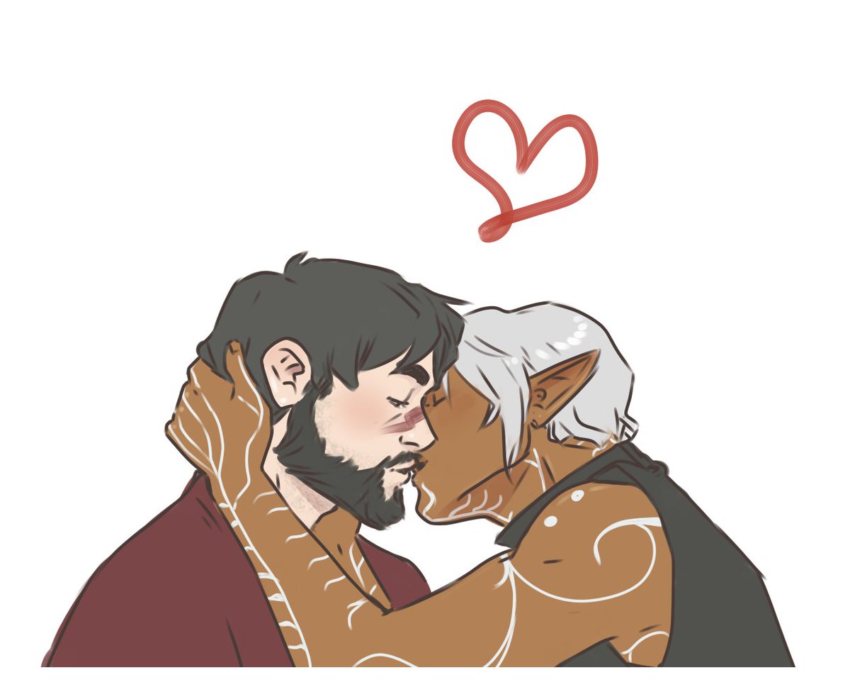 I had to draw the 💋💋💋!! Yes, they are wearing pj's and yes Fjord is in long johns :D #criticalrolefanart #CriticalRoleSpoiler #fjorester #CriticalRole