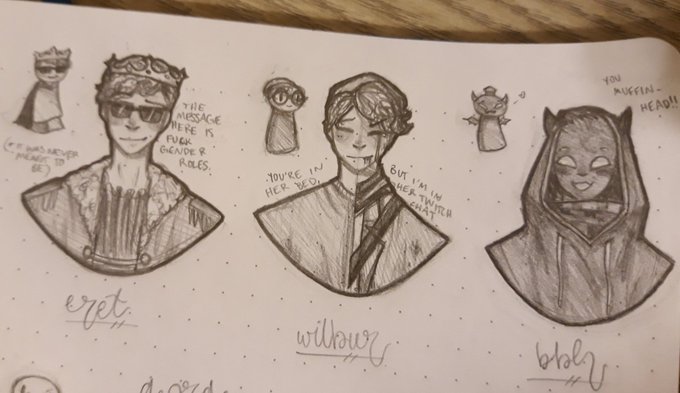 uh mcty fanart pog? apologizes for the ass-sucking quality of the picture for now but i've been contemplating doing these doodles in digital form someone plz lemme know if that's a good idea since this is the first time thank you <33 #eretfanart #wilburfanart #badboyhalofanart