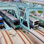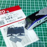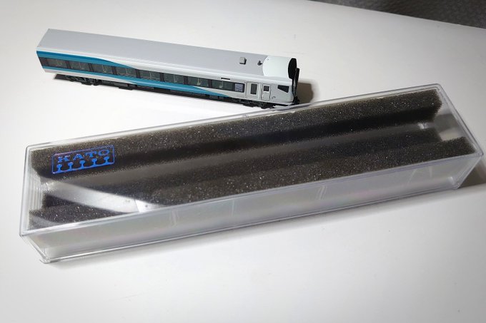 E331系落成報告 katoE231系ベースで製作しました。ライトユニットや動力など利用できる機構は有効活用しました。特徴的な厚みと角度のFRP前面部分はプラ板とパテを盛って整形。パンタは編成中2基しかないので頑張ってハイピングしました。つづくtwitter.com/captrain3/stat… #E331系