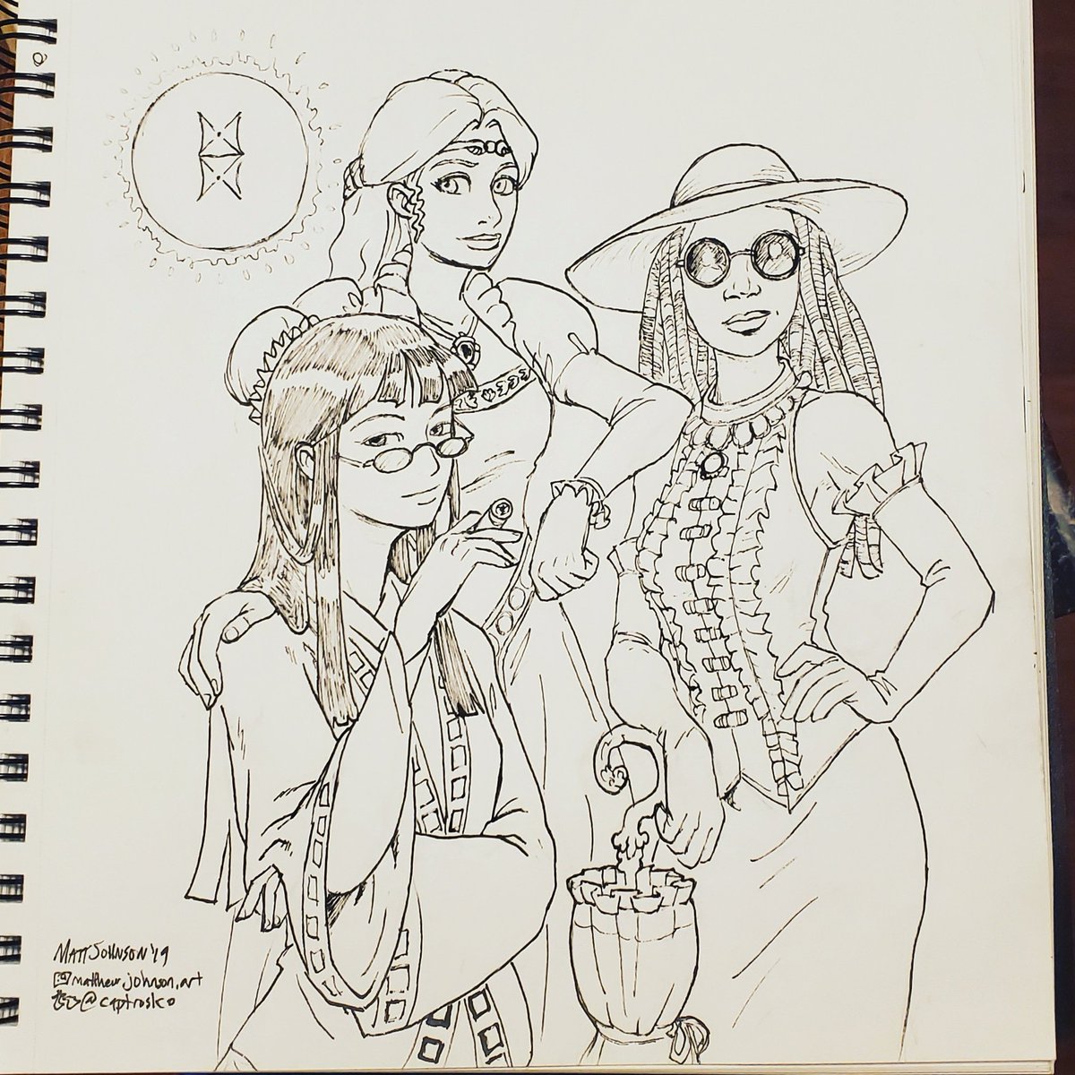 #CosmereInktober2019 Day: 20 "SHARP" Or... Sanderson Heroines All Rock Possee. #Shai #Khriss #Sarene #elantris #TheEmperorsSoul #WhiteSand #inktober2019 #cosmere #artistsontwitter