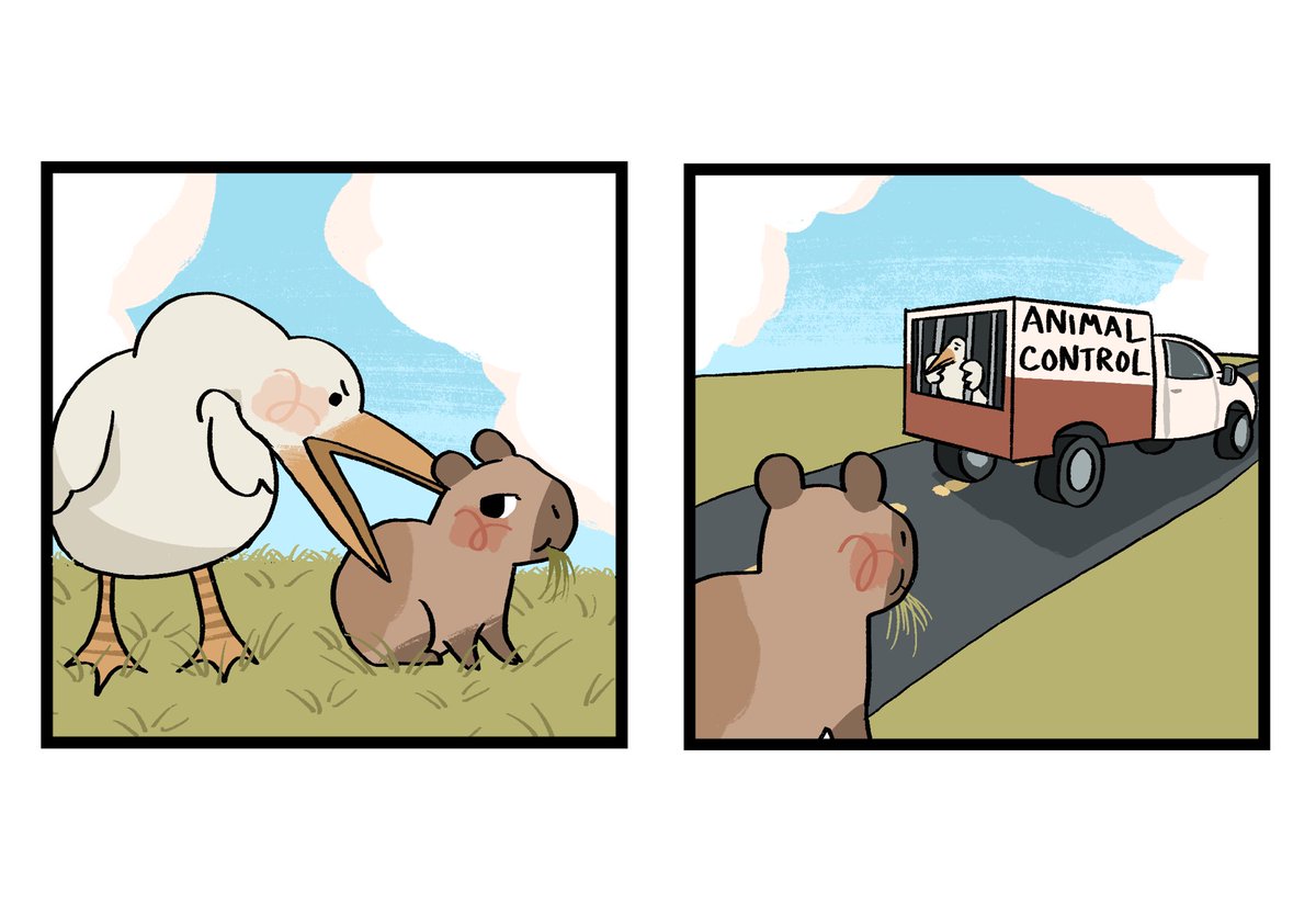 he'll ferry you across the lake for free, but he does appreciate a snack or two in return (day 13: job) #capypril2023