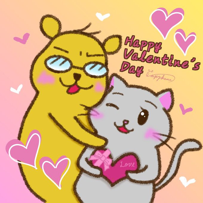 Valentine’s Day💕 #かぴはらさん #にゃーなちゃん #カピバラ #ValentinesDay2022 #バレンタインデー #イラスト好きな人と繋がりたい #絵描きさんと繋がりたい