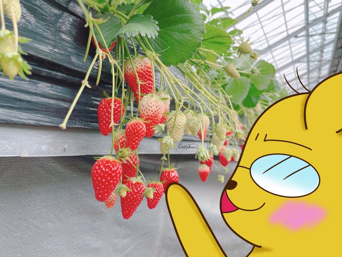 いつも行くいちご農園のいちごは、とてもキレイでとても美味しい❤️ #いちご #かぴはらさん #カピバラ #オリジナルイラスト #イラスト好きな人と繋がりたい #絵描きさんと繋がりたい