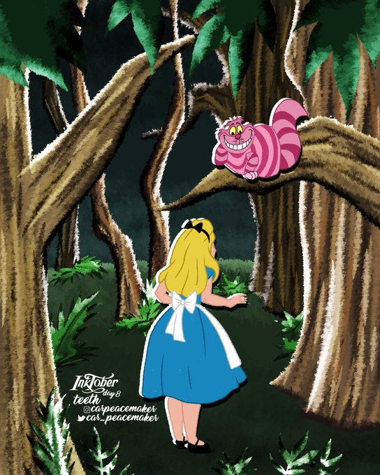 ⬛ DAY 8: TEETH 🦷😸 • #inktober #inktober2020 #inktoberday8 #inktoberteeth #teeth #aliceinwonderland #cheshirecat