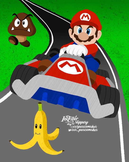⬛ DAY 12: SLIPPERY 🍌🏎 • #inktober #inktober2020 #inktoberday12 #inktoberslippery #slippery #mariokart