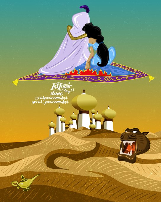 ⬛ DAY 13: DUNE 🏜🧞♂️ • #inktober #inktober2020 #inktoberday13 #inktoberdune #dune #aladdin #jasmine