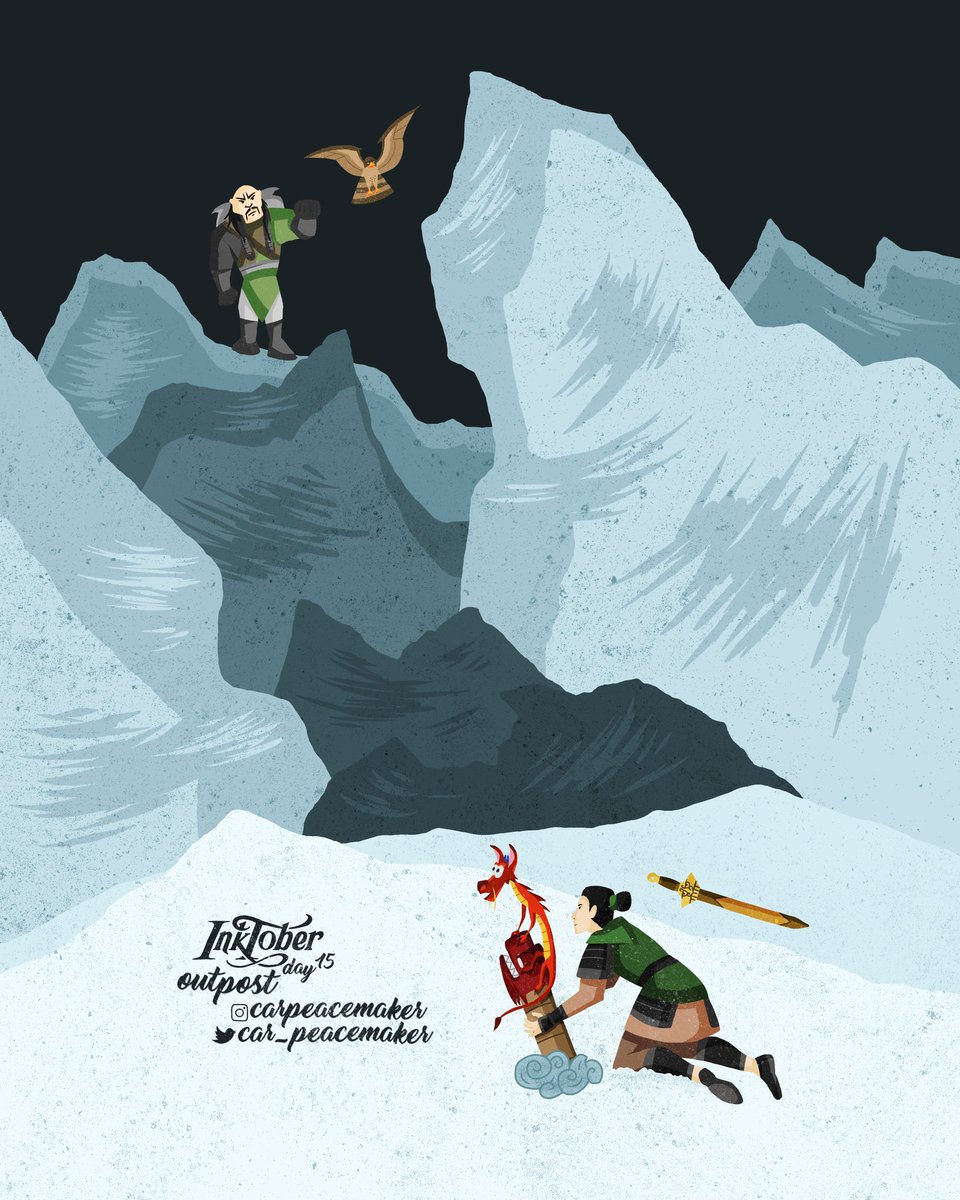 ⬛ DAY 15: OUTPOST 🐉🧨 • #inktober #inktober2020 #inktoberday15 #inktoberoutpost #outpost #mulan #mushu #shanyu