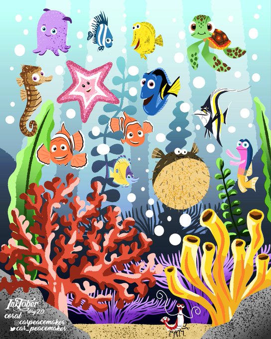 ⬛ DAY 20: CORAL 🐚🐡🐟🐠 • #inktober #inktober2020 #inktoberday20 #inktobercoral #coral #findingnemo #findingdory