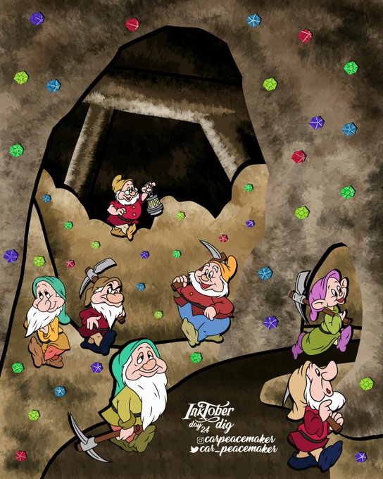⬛ DAY 24: DIG • #inktober #inktober2020 #Inktoberday24 #inktoberdig #dig #snowwhite #thesevendwarfs