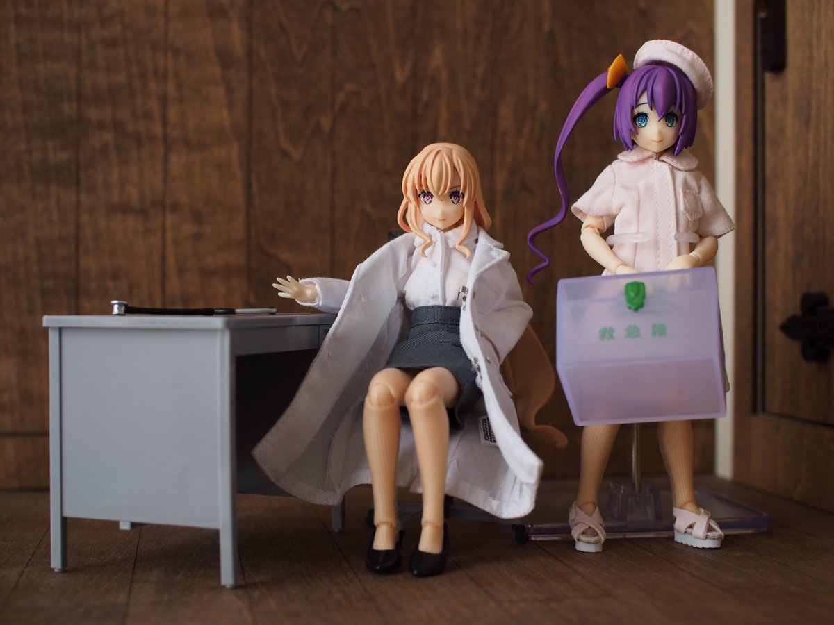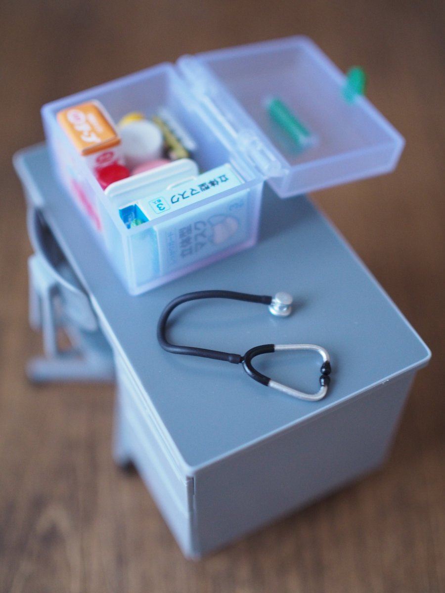 病院マスコット(ガチャ)の聴診器、首にかけるにはチューブが短かったので、熱収縮チューブに針金を通して収縮させて、形状固定できるようにしました。 ドクター央にめちゃ似合う。 薺ちゃんの救急箱も中身コンプリートしたので詰めました。 #アサルトリリィ #アサルトリリィドール部 #御台場女学校